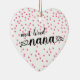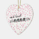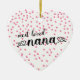 Most loved Nana heart shaped christmas ornament with a field of tine pink hearts background. Visit our shop to view this ornament in a large assortment of grandmother names.
