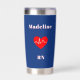 This nurse's thermal tumbler has a navy blue background and a red heart with a normal cardiac complex on it. The text displays the highest honor that a profession can receive, an honor which Nursing has achieved for years. On the back of the tumbler you can personalize it with a name and title.