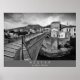 The poster with the black and white photograph of the Old Bridge and the Old Town of Mostar, Bosnia and Herzegovina.