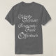 My 11 yo wore adult XL (5’7” 165#). The 8yo is small framed. She wore adult small and tied it in the back. Grandma wore adult large with long sleeve shirt underneath. Tall girl adult medium. Dark haired male adult large. Good quality dark Heather gray, Gildan brand shirt. -it was next up from basic choice and cost about $20 per shirt. Not too thick or thin. Washed and dried well, no major shrinkage. Not see-through. Can wear a bra under it fine. Screen print is just as shown and well done, front and back.