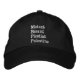 The design was easy to do with a number of options both the hat style, color and so forth. These aren't some printed letters, these are the real deal stitching. The two hats arrived quickly. I've used Zazzle in the past for shirts a number of times and this is the first time for a hat. Zazzle is absolutes the best in every respect; customer service, product selection and results. The embroidery was just right. My artwork was turned into a professional look thanks to Zazzle.