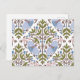 This postcard features a hand drawn design of a delicate moth and floral designs in a beautiful corn blue and olive green shades.