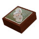 Gift box features Craftsman decorative ceramic tile. Classic Moth design in white and copper. This wood box can be a gift for men or women.