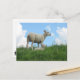Mother and Baby Sheep Spring PostCard. A Sweet Spring Scene with a mother Sheep and Her little Baby Sheep Lamb in the Grass of a hill against a beautiful blue sky with some fluffy clouds. This postcard is Fully Customizable, Add Your own Image(s) or Text if You want! Great spring card to send to Friends and Family!