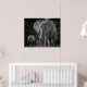 MOTHER & BABY ELEPHANTS - BLACK & WHITE POSTER