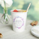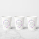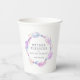 Mother blessing or Blessingway gathering purple and white paper party cups. Add your own mother to be's name and event details. Other matching items available. Original watercolor glass beads and feathers painting and design by Sarah Trett exclusively for www.mylittleeden.com on zazzle.