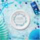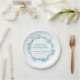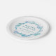 Mother blessing or Blessingway gathering teal and white paper plates. Add your own mother to be's name and event details. Other matching items available. Original watercolor glass beads and feathers painting and design by Sarah Trett exclusively for www.mylittleeden.com on zazzle.