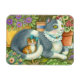 MOTHER CAT AND KITTEN, POTTED FLOWERS, BOWS & LACE MAGNET