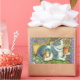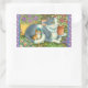 MOTHER CAT AND KITTEN, POTTED FLOWERS, BOWS & LACE RECTANGULAR STICKER