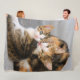 Mother cat fondly grooms and licks her young kitten tenderly, both faces side by side. Mutual grooming shows the friendly relationship between cats. This fleece blanket is a gift idea for cat lovers. This cute and lovely kitty picture was photographed by Katho Menden