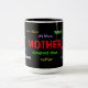 Coffee Mug with the word MOTHER in a bold red and various other Mother words in colorful fonts on a black background.