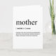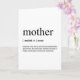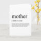A card featuring the definition of the word "mother". Mother - someone who loves her kids unconditionally and always has their best interests at heart; a maker and keeper of precious memories. Also available in black.