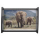 Mother elephant walking with elephant calf serving tray