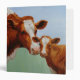 A mother brown Guernsey cow lovingly nuzzles her adorable baby calf. Realistic artwork created from an original oil painting by equine and wildlife artist Crista S. Forest.