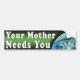 Colorful picture of earth with words "Your Mother Needs You". Discounts for multiple orders. By D. Bennett from Balance America.