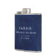 Dark blue watercolor wedding flask with beautifully painted watercolor background. Fully customizable!
