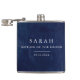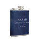 Dark blue watercolor wedding flask with beautifully painted watercolor background. Fully customizable!