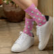 These socks are soft and comfortable. Good fit, the elastic around the calf does not leave a mark. The print is true to color, with colorful designs. The cookie trail and Christmas lights around the reindeer antlers are crisp and not blurry. .
