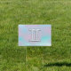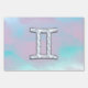 A mother of pearl like Gemini zodiac symbol on a soft pink and blue background. A modern fresh girly style design for a great custom birthday gift idea for her.