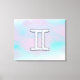 A mother of pearl like Gemini zodiac symbol on soft pink purple fuchsia background. A modern urban girly style design for a great custom birthday gift idea for her.