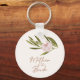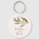 Elegant modern eucalyptus greenery pink orchid mother of the bride button keychain.