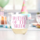 The perfect gift for the mother of the bride so she can have her red or white wine in style. "MOTHER OF THE BRIDE” in a pink modern font. Personalize the back with a name. It makes a great for your friend as she celebrates this milestone or a bride can gift it to her Mom. We have the matching pink bride, maid of honor, matron of honor mother of the groom, bridesmaid, and friend of the bride glasses in my shop, PageCreativeDesigns.