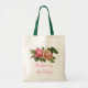 Pretty floral canvas tote bag, just for the mother of the bride, with elegant vintage artwork of two pink roses. Mother of the Bride, in pink script text, at the bottom, is customizable to read what you want. Personalize for the whole wedding party by changing the text.