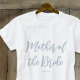 Make Mom feel special with a personalized wedding t-shirt! A chic design featuring the phrase "Mother of the Bride" in a stylish script font, and customized with a name, wedding date, location, or any text you choose. Perfect for bachelorette parties, bridal showers, or a fun wedding weekend — it’s a thoughtful and fashionable keepsake your Mom will love! Printed template colors: dusty blue on white.