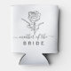 Simple, elegant, minimal, black and white Mother of the Bride Wedding favor can cooler with modern script and unique rose flower drawing.