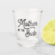 A Mother of the Bride shot glass featuring a minimalist simple calligraphy script font.