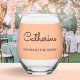This stemless wine glass features an elegant, minimalist design on a pretty peach background. Personalize with the mother of the groom's name, which will be displayed in stylish script typography.