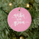 Lightweight, smooth, pure white ornament with nice sheen. Perfect size to be seen from across the room ... and to attract closer inspection! Price was great for ordering enough for the whole family! Clear, bold black design just as requested. Matches the order exactly. Just so nice!