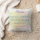 A soft watercolor look of blended pastel green, yellow, purple, pink and peach provides a beautiful backdrop for a Mother's Day or gift for mom sentiment. Prose on both sides of the pillow can be customized.
