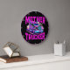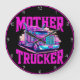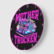 This vibrant wall clock boldly celebrates the "Mother Trucker" identity with an electrifying design. Against a black background with a bright pink rim, it features a semi-truck rendered in striking purple and teal hues. The prominent text "MOTHER TRUCKER" in a matching pink stands out as a powerful declaration of strength and attitude. This clock is an excellent gift for any fearless female driver. The design tool can also be used to add custom text if you want your name or company on this clock. You can customize the color of the frame to any color you desire by going into the design tool.