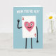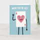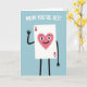 This card features a friendly, human-like playing card character centered on a pale blue background, giving the scene an airy, calm feel. The card is a white rectangle with a large rosy-pink heart in the middle, and the heart has wide dark eyes, arched brows, and a small smile that feels gently affectionate ❤️. Thin dark arms and legs extend from the card, with one arm lifted in a wave that reads like a warm hello to someone close. Near the top, rounded white text is placed in a single line and reads “MUM YOU’RE ACE!”, standing out clearly against the blue. Small red heart symbols sit in the corners of the card, tying the design together with a quiet, caring tone 🌼. The simple shapes and soft colors keep attention on the character’s tender expression and welcoming gesture, like a sweet moment shared between family or friends. The central heart is rosy pink, while the corner hearts are red, and the raised waving arm angles slightly upward to the left.