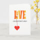 This bright modern design has LOVE in orange-yellow colored capital letters with a pattern of white flowers, and there is a reddish-orange heart hanging from the L. You can personalize this card by editing the text on the heart, and inside edit the message too. Or if you prefer, you can just use the suggested "To the best mother in the world". Send LOVE on Mother's day.