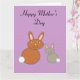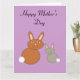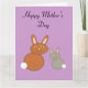 This giant Mothers Day card features an adorable image of a mother and baby bunny sitting side by side. The mother bunny is pale brown and the baby bunny is grey. Both bunnies have adorable white tails and big smiles on their faces. A lovely design that is perfect for Mothers Day. There is customizable text on the front and inside of the card allowing you to personalize it.