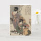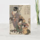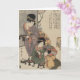 A vintage Japanese image of a Mom with her 2 children with the proverb - "Mother's love is with her children" on a ribbon