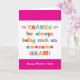 You call your grandmother Gram, not Grandma. Imagine how excited Gram will be to receive a Mother's Day card addressed especially to her! Your gram also will love this Mother's Day card's fun, colorful text-based design that says "Thanks for always being such an awesome Gram! Happy Mother's Day!"