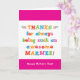 You call your grandmother Marmee, not Grandma. Imagine how excited Marmee will be to receive a Mother's Day card addressed especially to her! Your marmee also will love this Mother's Day card's fun, colorful text-based design that says "Thanks for always being such an awesome Marmee! Happy Mother's Day!"