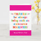 Make this card customizable! Click "Edit Design", "Inside Bottom/Right: Text & Images", "Text", and "Add text" to write your own custom, personalized message to Marmee inside!