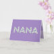 Mother's Day Card for Nana. Nana will love this Mother's Day card's beautiful floral design that says "Nana" written in small white flowers on the front, with a purple background, and "Happy Mother's Day!" written in small white flowers on the inside.