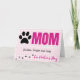 Mother's Day card from the Pets. A folded card with pretty, light pink checked background with a cute black paw print next to the word 'MOM' which is printed in bright pink. ' There is a space for pets name(s) running beneath the word 'MOM.' There are paw prints walking along the bottom of the card, and the words 'On Mother's Day' completing the front of the card. Inside is a simple message 'Happy Mother's Day.'