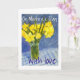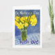 A Mother's Day card with a glass vase of golden daffodils on a blue and white checked table cloth, from an original oil pastel painting. The front text reads, 'On Mother's Day, With Love' and the inside is left blank for your own message.