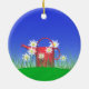 Hanging ornament with my original design of a bright red watering can on green grass with daisies and a blue sky. Customizable text says "Happy Mother's Day".