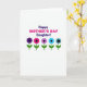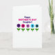 This card features a white background with the message “Happy MOTHER’S DAY Daughter!” centered near the top for immediate focus. The word “Happy” and “Daughter!” appear in deep indigo, while “MOTHER’S DAY” sits between them in bright fuchsia, creating a sweet, affectionate contrast ❤️. Beneath the text, a neat row of five simple flowers lines up like a small bouquet offered with care. The first four blooms have rounded petals in rich purple, bright fuchsia, soft lavender, and light blue, each with a dark circular center. Slender green stems and matching leaves sit under each flower, giving the row a balanced, gently supportive look 🌼. The final flower stands out with spiky black starburst petals around a light blue center, adding a modern twist to the otherwise soft shapes. The flowers are arranged in a straight horizontal line below the lettering, with the starburst bloom at the far right.