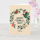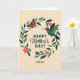 Designed with a soft, creamy background, this digital illustration centers on a round leafy wreath that feels like a gentle hug for Mom ❤️. Deep emerald leaves form the circle, dotted with small white flowers with yellow centers and a few coral-red blooms that add a romantic, garden-fresh touch. In the middle, the main text reads “HAPPY Mother’s DAY!” with “HAPPY” and “DAY!” in thicker, darker lettering and “Mother’s” in a flowing, lighter style, all neatly stacked. Just beneath, “with love” appears in smaller text, tucked close to the bottom of the message in a darker tone for contrast. At the upper left of the wreath, an orange-and-black butterfly with tiny white speckles tilts inward as if drawn to the flowers 🌼. On the right side, an emerald-green bird with a ruby-red throat glides toward the center, wearing a tiny golden crown that gives it a sweet, admiring look. The wreath’s greens, warm oranges, and coral reds stand out crisply against the pale background, with the butterfly at top left and the crowned bird on the right balancing the circle.