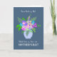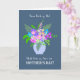 This pretty, contemporary floral Mother's Day greeting card from a couple or any two people features a bouquet of pink, blue and white flowers in a pale blue vase on a dark blue background. The greeting on the front cover is, ''From Both of Us!' in white handwriting script at the top. Below the vase of flowers, it says, 'With lots of love on ' and then 'MOTHER'S DAY!' in a decorative lettering. The inside message is just a suggestion and you can easily change it or delete it altogether if you prefer a 'blank inside' card.