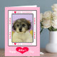 This beautiful Mother's Day card is from the dog or dogs. The design features her doggie as the focal point in a little frame which says "I (heart) my Mommy along with XOXO." Underneath the photo are the words "Happy Mother's Day" with the word Mother's inside a red heart. The design features a beautiful pink background just for Mom. Inside a lovely verse appears from the dog or dogs. This is the perfect card for that perfect dog Mom! Copyright Kathy Henis
