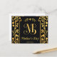 A monogrammed Mother's Day gift tag using gold foil textures, serif typography, and a deep jewel-tone color palette.